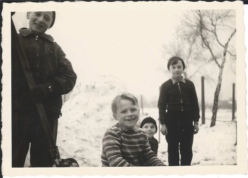 Jack-Peter Kurbjuweit mit seinem jüngeren Halbbruder im Sonntagsstaat mitten im Lager